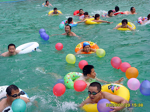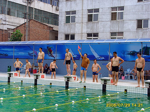 為活躍員工業(yè)余文化生活,根據(jù)工會(huì)2006年工作計(jì)劃,7月29日公司工會(huì)舉辦了“職工趣味游泳比賽”。五個(gè)分會(huì)的六個(gè)參賽隊(duì)參加了六個(gè)項(xiàng)目的比賽,參賽員工熱情高漲,精神飽滿,整個(gè)活動(dòng)進(jìn)展順利,比賽取得了圓滿成功。