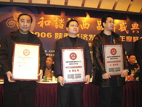 為更好的加強(qiáng)陜西省自主創(chuàng)新和自主品牌建設(shè)事業(yè)的發(fā)展,樹立陜西品牌典型,促進(jìn)陜西經(jīng)濟(jì)全面發(fā)展,1月20日,和諧陜西、品牌盛典-----2006陜西經(jīng)濟(jì)發(fā)展品牌年度峰會(huì)在西安召開,陜西200余個(gè)知名品牌榮獲首屆陜西行業(yè)十大品牌、首屆陜西十大杰出品牌人物獎(jiǎng)等6項(xiàng)13個(gè)行業(yè)的獎(jiǎng)勵(lì)。我公司被授予陜西經(jīng)濟(jì)發(fā)展黃金級(jí)品牌單位、陜西省重點(diǎn)推廣品牌、陜西電子信息行業(yè)十大品牌榮譽(yù)稱號(hào)。