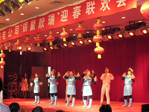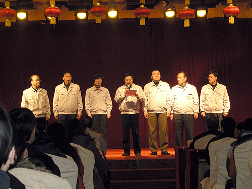 聯(lián)歡會(huì)在舞蹈“歡慶鑼鼓”中拉開序幕。公司董事長(zhǎng)李強(qiáng)致新春賀辭,向關(guān)心、支持和幫助紡電公司發(fā)展的市國(guó)資委、長(zhǎng)嶺各兄弟單位表示崇高的敬意,他充分肯定了紡電公司2007年取得的經(jīng)營(yíng)業(yè)績(jī),展望并明確了2008年的工作思路和經(jīng)營(yíng)目標(biāo),號(hào)召全體員工為構(gòu)建和諧奮進(jìn)新長(zhǎng)嶺努力奮斗。寶雞市國(guó)資委主任袁軍曉代表國(guó)資委向紡電公司員工及家屬致新年的祝福,激勵(lì)長(zhǎng)嶺紡電在2008年的生產(chǎn)經(jīng)營(yíng)中,再創(chuàng)新佳績(jī)。公司總經(jīng)理薛冬泉帶領(lǐng)經(jīng)營(yíng)班子成員給大家拜年。
