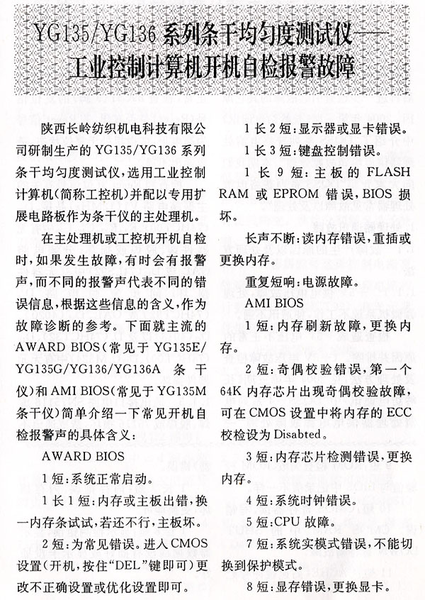 YG135/YG136系列條干均勻度測(cè)試儀—工業(yè)控制計(jì)算機(jī)開機(jī)自檢報(bào)警故障