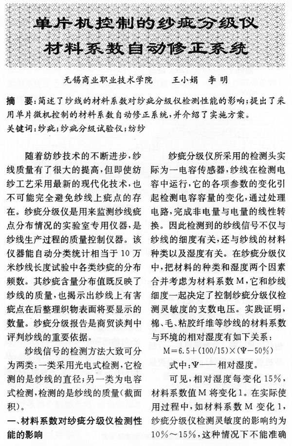單片機控制的紗疵分級儀