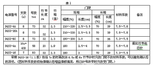 近幾年來(lái)我公司根據(jù)市場(chǎng)的需求大量紡竹節(jié)紗,為了清除大于竹節(jié)幅度的紗疵,使生產(chǎn)和質(zhì)量?jī)刹徽`,電子清紗器的各種參數(shù)設(shè)定很重要,尤其是門(mén)限設(shè)定更為重要。我公司使用陜西長(zhǎng)嶺紡織機(jī)電有限公司的DQSS-4A、DQSS-8G、DQSS-16A等各種型號(hào)的電子清紗器,在運(yùn)用這些型號(hào)的電子清紗器絡(luò)低支竹節(jié)紗中,總結(jié)了點(diǎn)滴經(jīng)驗(yàn)供大家參考。