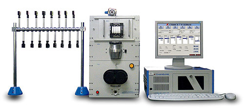 CT800C條干儀由檢測分機(jī)(包括張力器、檢測單元、加捻單元、傳動單元、吸紗單元)、主處理機(jī)(包括顯示器、工控機(jī)、鼠標(biāo)和鍵盤)、打印機(jī)及紗架等附件組成。