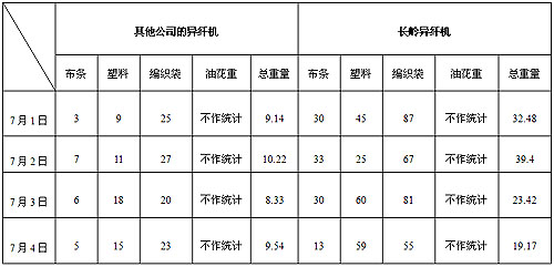 (6)每班由專人挑揀收集噴出的異纖,并統(tǒng)計其重量和種類。參數(shù)調(diào)整人員負責檢查記錄及清除異纖的情況,并根據(jù)清除狀況調(diào)整相關參數(shù),確保機器的使用效果。