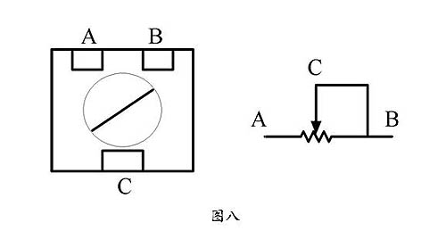 通過試調(diào)靈敏度調(diào)整電位器,靈敏度可在20mV~60mV的范圍內(nèi)可調(diào),3570mV的靈敏度已遠遠超出電位器的調(diào)整范圍,這說明該檢測頭的電位器已經(jīng)損壞。S30檢測頭中的電位器(型號3314J-1-104, 原理圖中位號RP1)為易損器件,一旦有檢測頭被確定為故障頭,應首先檢查電位器是否正常,電位器在檢測頭印制板的背面,見圖七所示:電位器有3個觸點,如圖九中A、B、C三點,用三用表測量電位器A、C兩點的電阻值應在0~110K之間,若不在此范圍內(nèi),就需要更換電位器了。