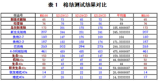 目前,XJ129測(cè)試短絨數(shù)據(jù)結(jié)果與實(shí)驗(yàn)室(國(guó)家標(biāo)準(zhǔn)棉樣)定值相當(dāng),棉結(jié)數(shù)據(jù)與USTER公司的MN100數(shù)據(jù)相當(dāng)。