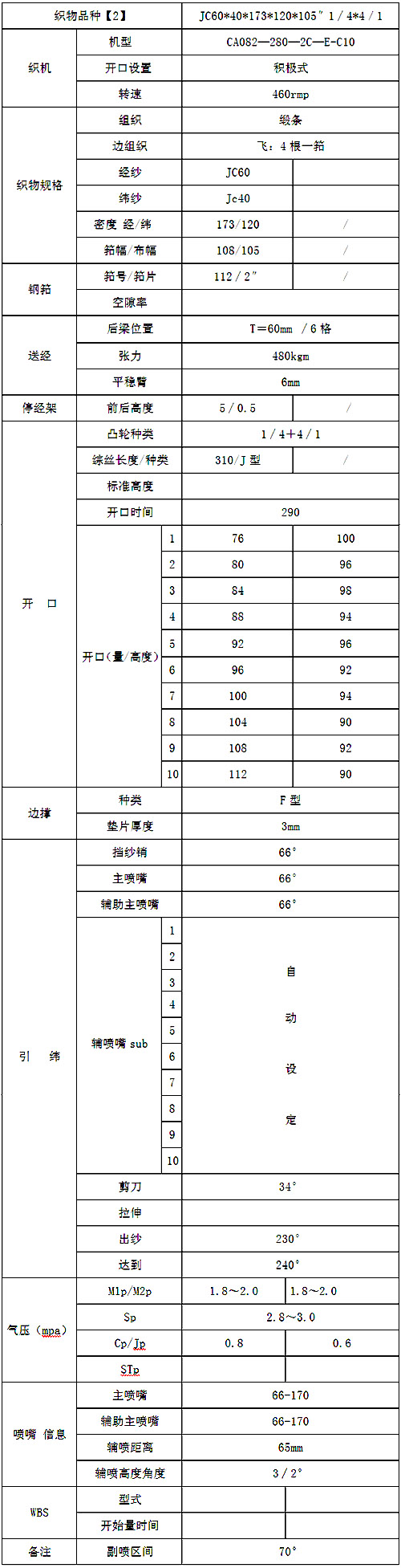 對噴氣織機而言一般制造應(yīng)適應(yīng)如下