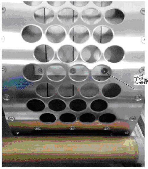 將新的四指壓板按照舊零件的安裝關(guān)系放入取樣筒,注意:取樣筒中橡膠板應(yīng)在四指壓板的上側(cè),四指壓板折彎頭應(yīng)朝后側(cè)。然后點擊“指形壓板-按下”按鈕,四指壓板在外力作用下按下,注意與壓板連接的零件不能翻轉(zhuǎn)到后側(cè),如果位置不正確,應(yīng)該重新操作。然后上下左右調(diào)整四指壓板的位置,使四指壓板的三個過孔正對壓板連接零件的螺紋孔。再將壓板從多孔不銹鋼取樣板的孔中塞入,慢慢調(diào)整其位置(可以用比較細(xì)的內(nèi)六角根據(jù)作為輔助工具)對正過孔。最后用十字螺絲刀吸附著十字沉頭螺釘旋入螺紋中,三個螺釘(如果螺釘有損壞,可以更換附件中的同規(guī)格新螺釘)全部安裝好后,四指壓板更換基本宣告結(jié)束。
